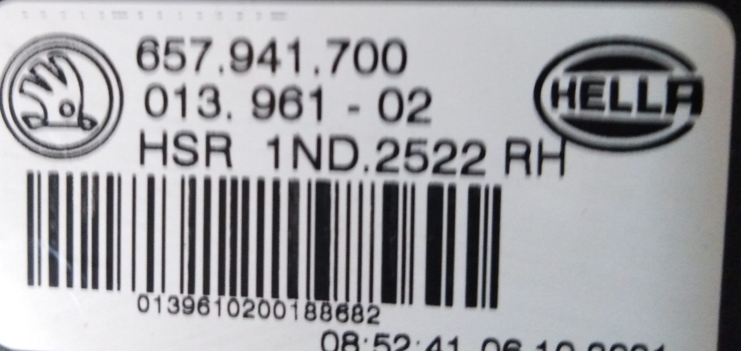Mlhové světlo levé, číslo dílu 657941699, poškození ulomený 1 držák dole viz foto. Použitý díl.