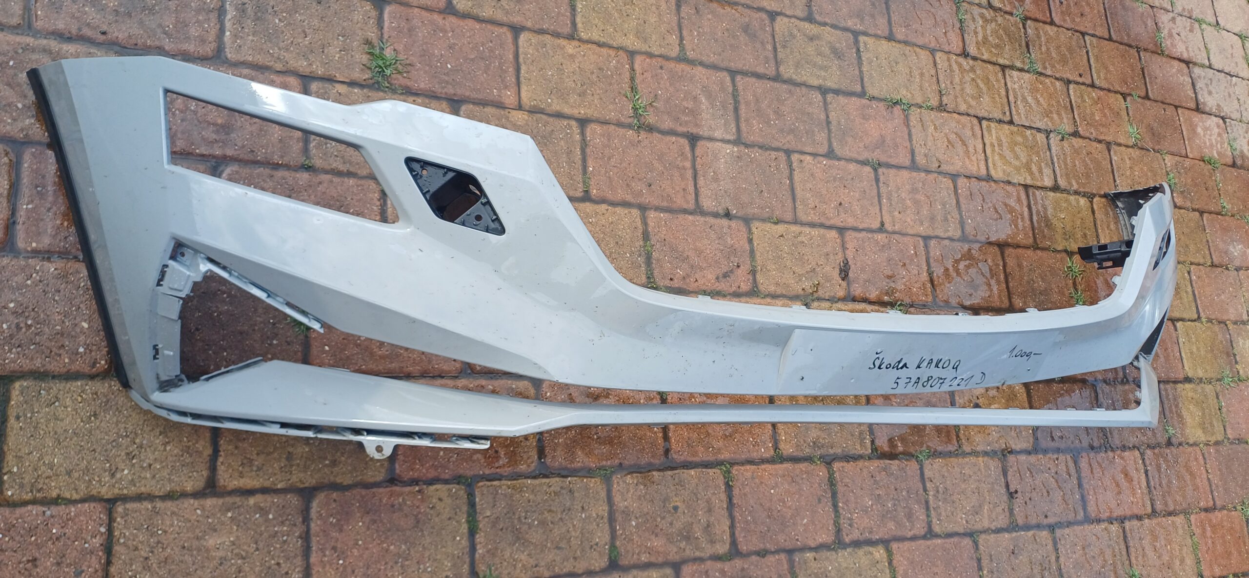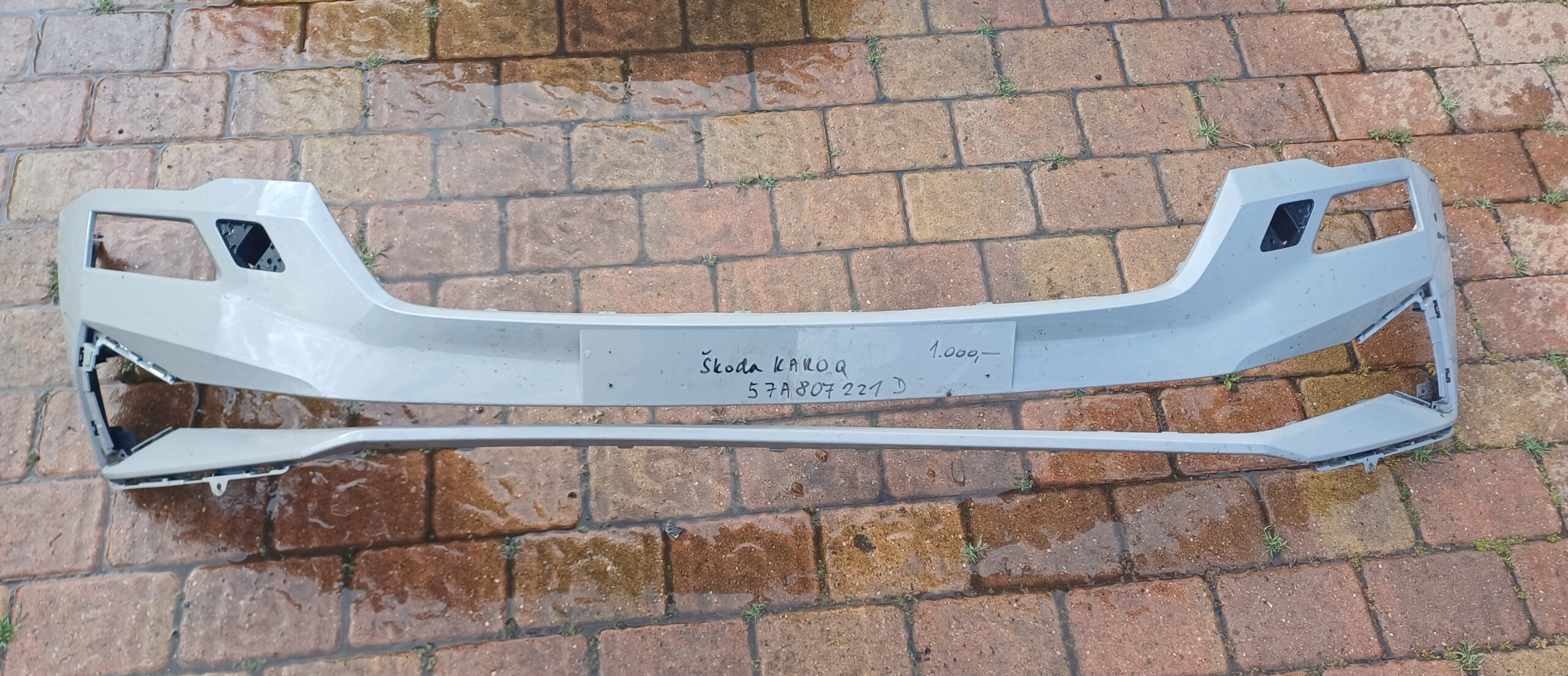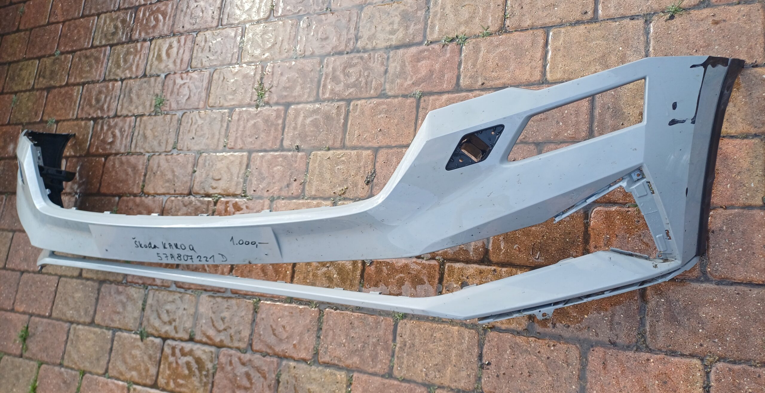 Přední nárazník Škoda Karoq, číslo dílu 57A807221D. Poškození viz foto. Použitý díl.