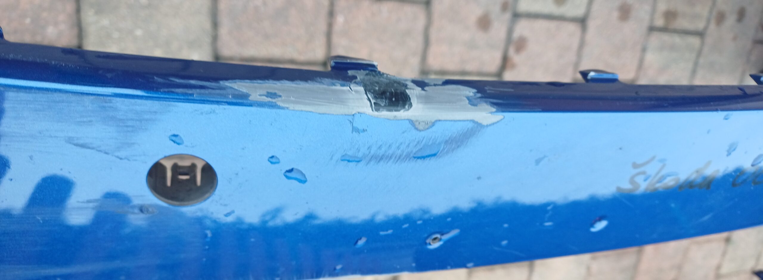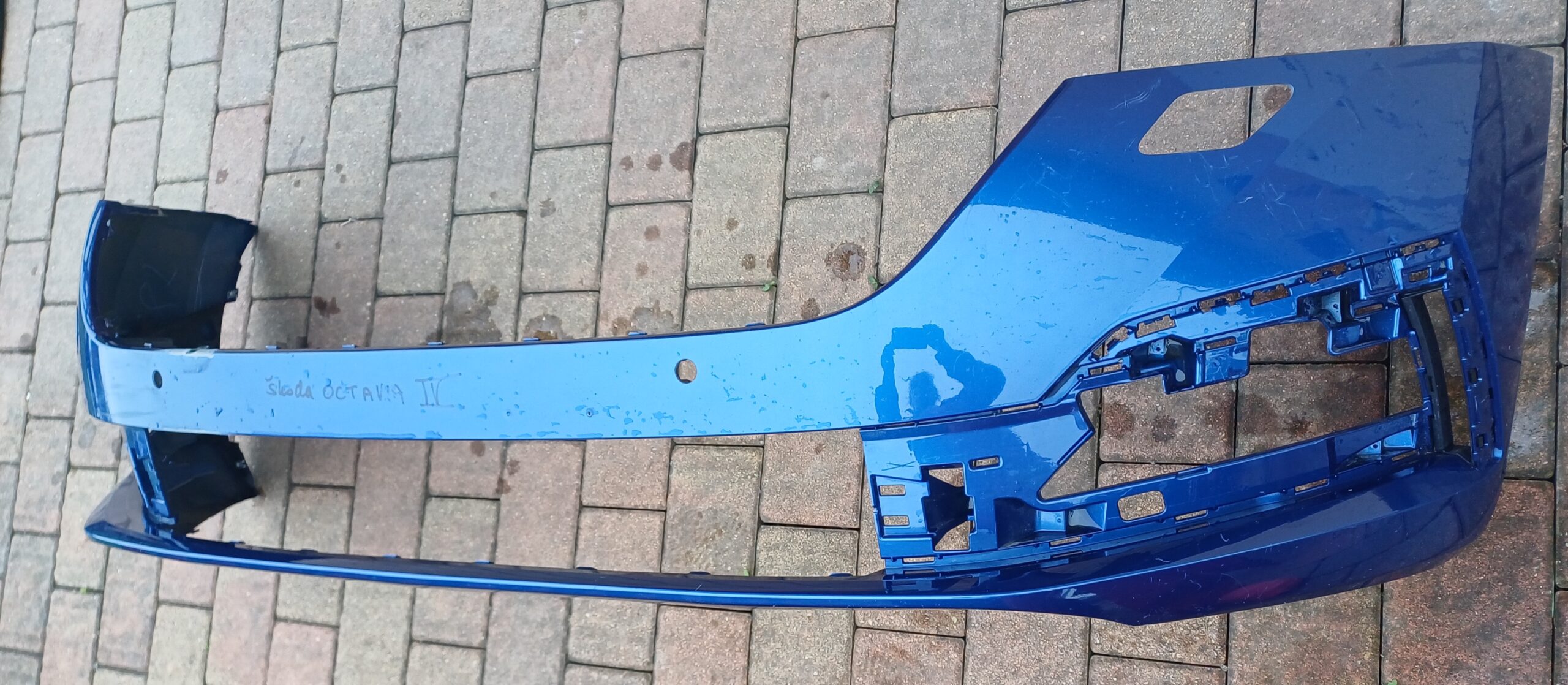 Nárazník číslo dílu 5e3807221, poškození viz foto odborně opraveno, otvory pro parkovací senzory a odstřikovače světel.