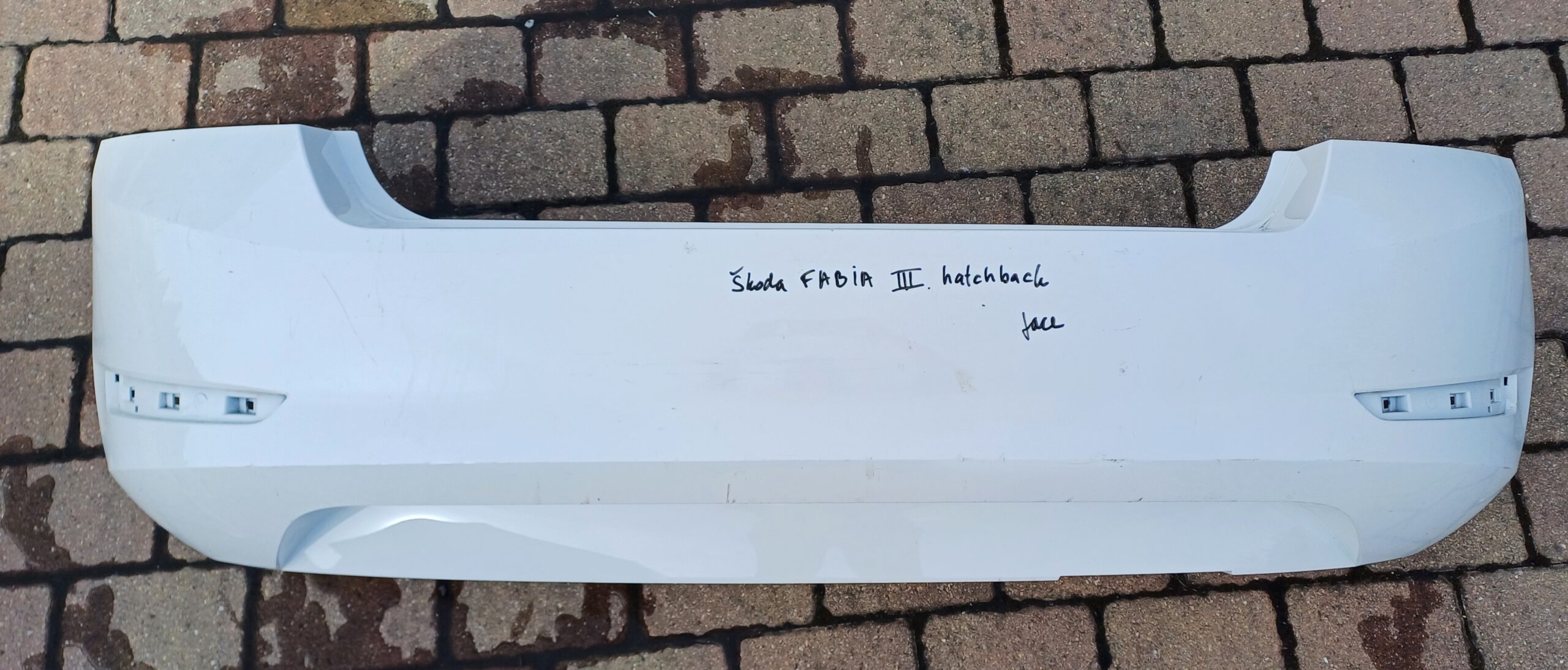 Zadní nárazník Škoda Fabie III hatchback, facelift. Drobné poškození viz foto pouze jemně podřený. Použité zboží.