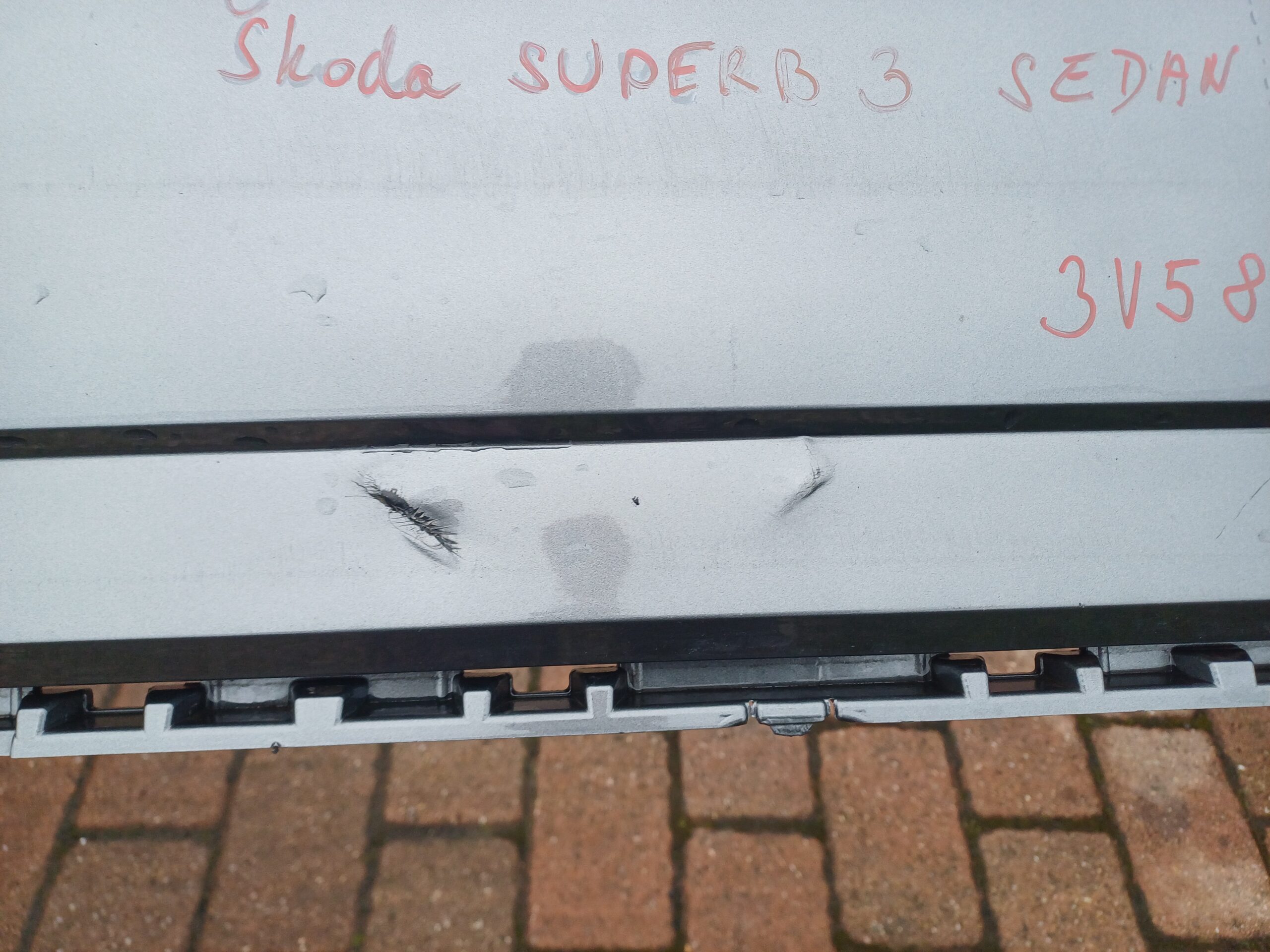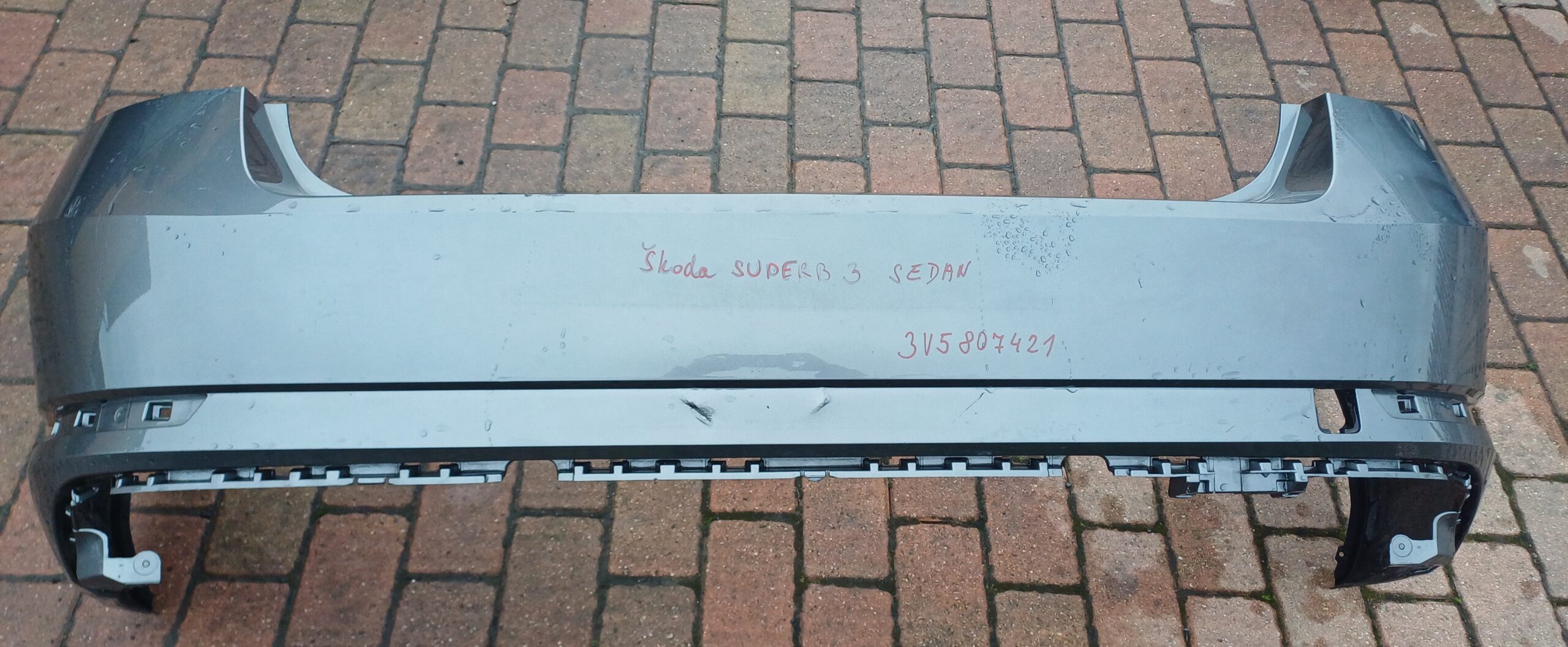 Zadní nárazník Škoda SuperB III sedan-liftback, číslo dílu 3V5807421, poškození viz foto. Použitý díl.