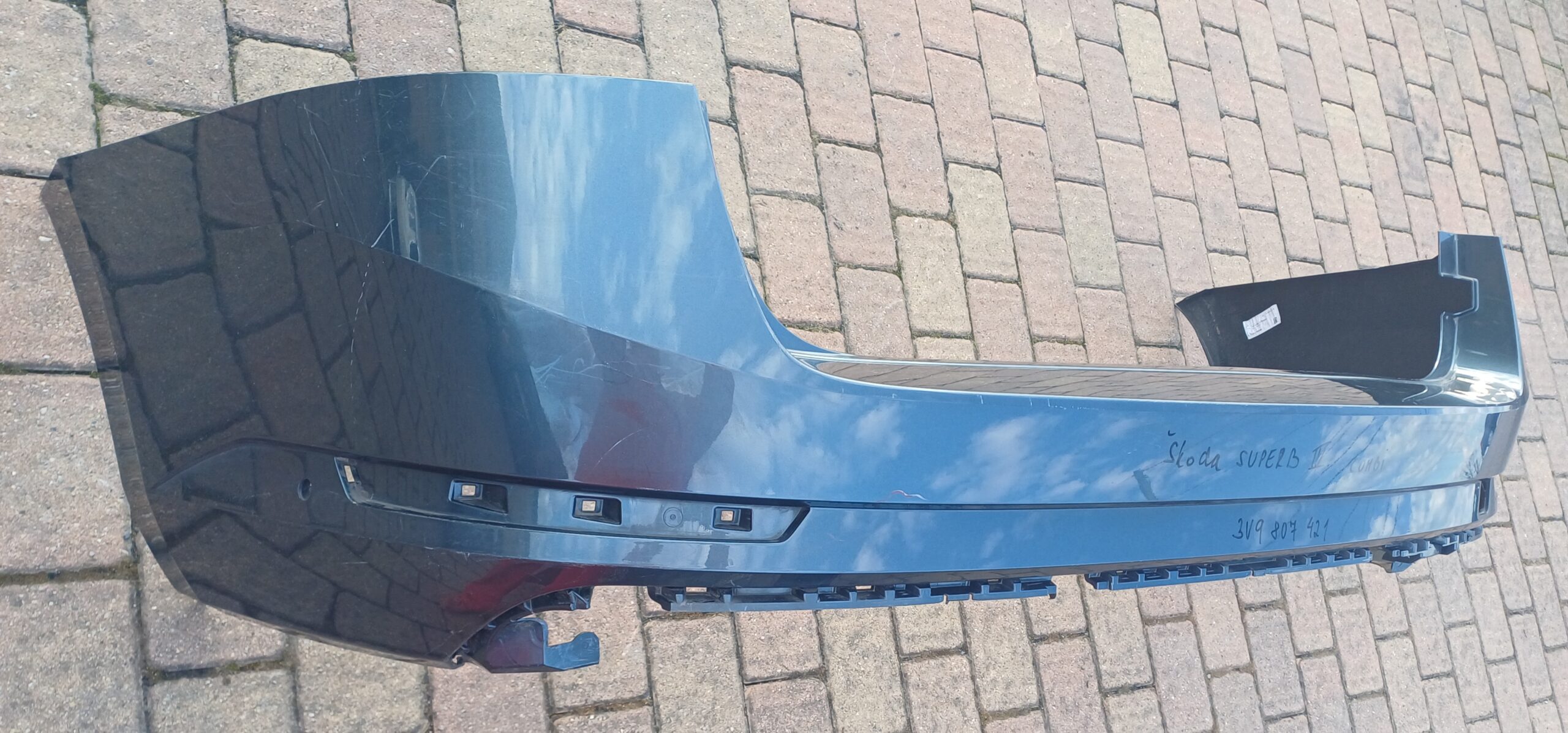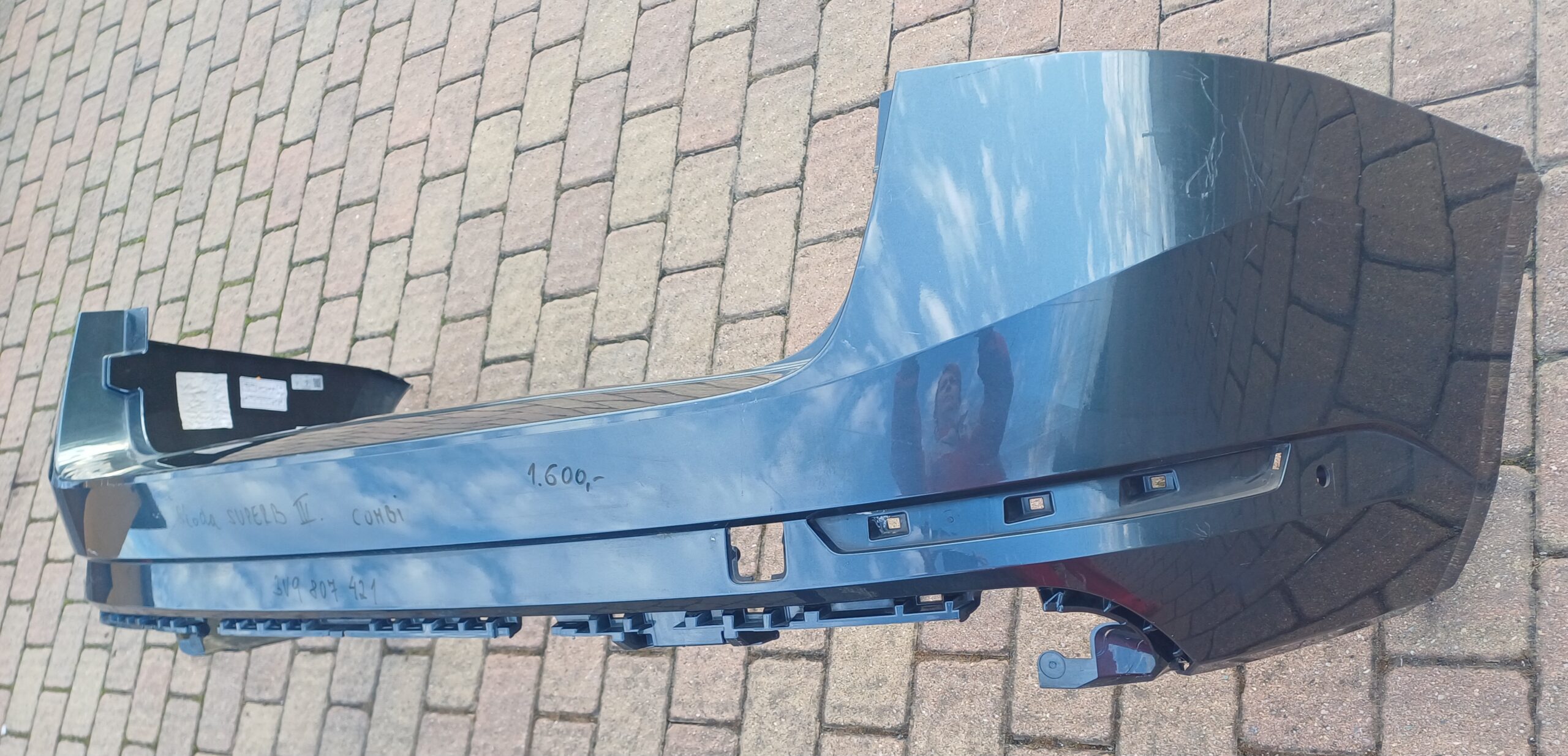 Zadní nárazník Škoda SUPERB III combi, číslo dílu 3V9807421. Poškození viz foto. Použitý díl.